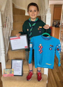 One is Henry who – as a Beaver – completed all of the badges he was eligible for over a two year period and would have completed it earlier if it hadn’t been for the pandemic. Special thanks to our water activity unit – the Water Rats – who organised a sailing session and ensured Henry completed all of the requirements of his final badge (sailing!).