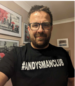 My Name is Andy, AKA Barts. I’m 42 years old and I started attending Andy’s Man Club at the beginning of June 2022. I can honestly say it has changed my life for the better in such a short time.