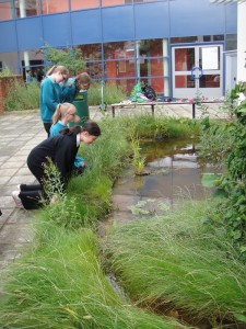 Plans for the garden include an allotment area plus plantings of native trees and shrubs. A wildlife and marsh area will encourage the introduction of wild life to the area. The Courtyard Classroom Gardenwill eventually be partly irrigated by a water recycling project from the science department s grey water research project. The pond will have an underwater camera to film the comings and goings of its pond life. The whole project, led by the three science technicians, will be overseen by pupils from the science department who will be monitoring the garden s weather station, and keeping records from the pond and bird box web cameras.