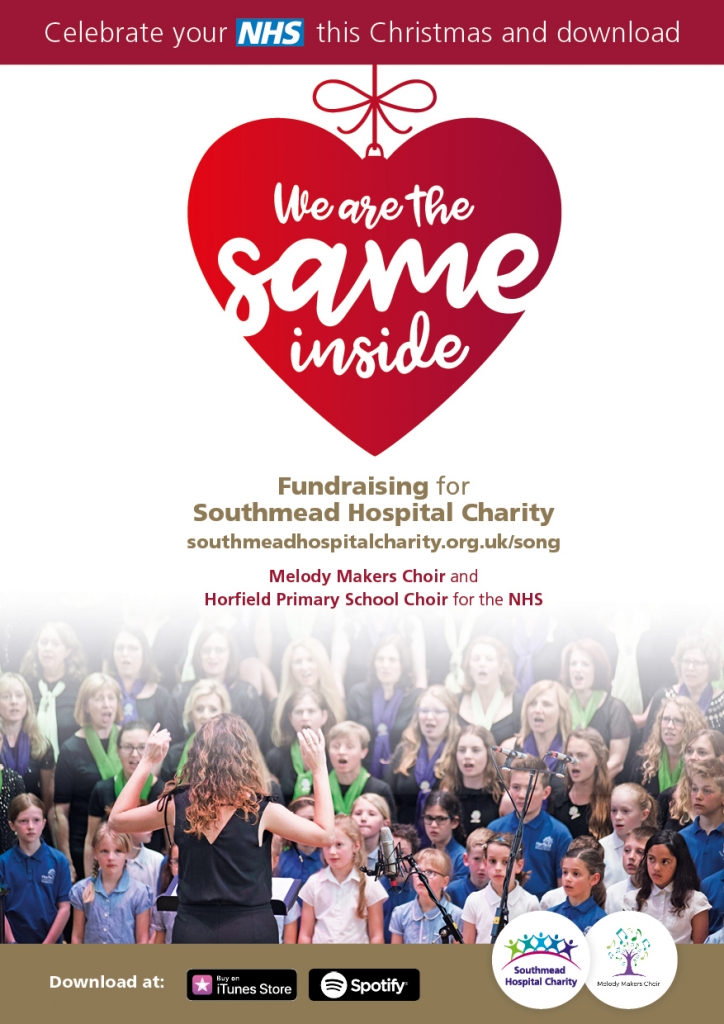 ‘We Are The Same Inside’ by ‘Melody Makers Choir and Horfield Primary School Choir for the NHS’ is available to download on all digital download sites from today (30th November). Money raised from downloads will be donated to Southmead Hospital Charity to support patients and fund medical research and new equipment at North Bristol NHS Trust.