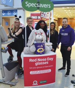 Sporty staff from the Bradley Stoke opticians were out raising money for Comic Relief, undertaking an exercise-a-thon earlier today – Tuesday 21 March.