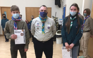 The scheme trains the young people with many of the same skills provided for adult leaders and many of the YP go on to continue in scouting into adulthood. Jack and Josh (photo left) were both presented their awards by the District Explorer Scout Commissioner Steve Daniels who said that during the last 2 years the YL’s had shown a great amount of commitment with lots of the modules held on zoom. The support that these young people give during troop evenings and camps is invaluable with practical leadership to complete the mission requirements.
