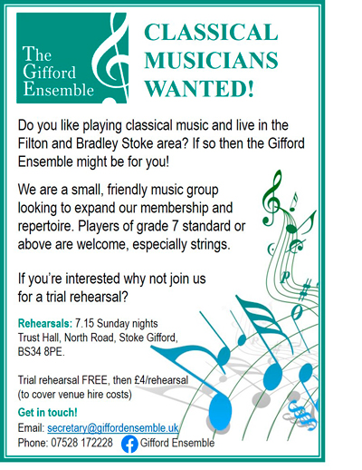 Do you like playing classical music and live in the Filton and Bradley Stoke area? If so then The Gifford Ensemble might be for you!