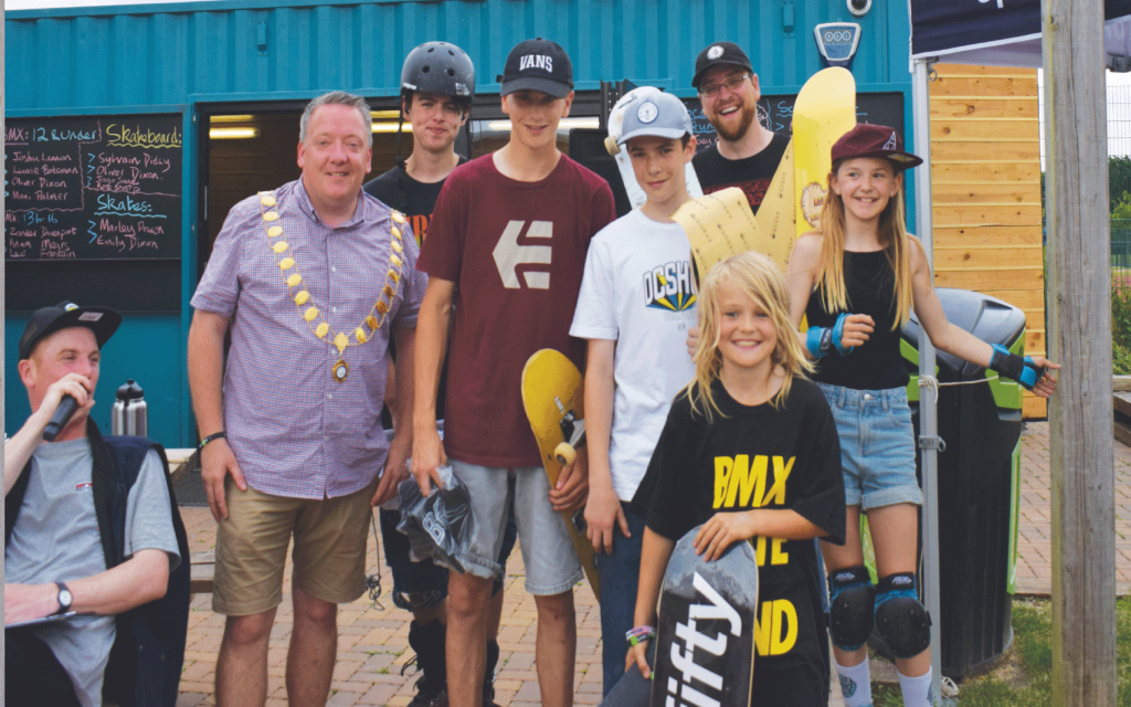 At the start of the summer, on Saturday 17th June, the annual Festival Skatepark Competition took place and youth workers, and local young people were delighted to host a popular package of Skatepark and Art activities. A mix of skate park skills and creative arts ran alongside the Skatepark competition. The competition was interspersed with rider demonstrations and ‘have-a-go’ opportunities, along with music and an MC. A range of competitions took place during the day, including Scooter’s, BMX, Skateboard and Roller Blades and the prizes were presented by the Town’s Mayor Dayley Lawrence.
